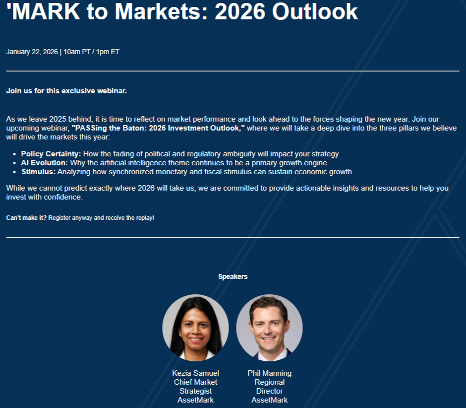 As we leave 2025 behind, it is time to reflect on market performance and look ahead to the forces shaping the new year. Join our upcoming webinar, "PASSing the Baton: 2026 Investment Outlook," where we will take a deep dive into the three pillars we believe will drive the markets this year: